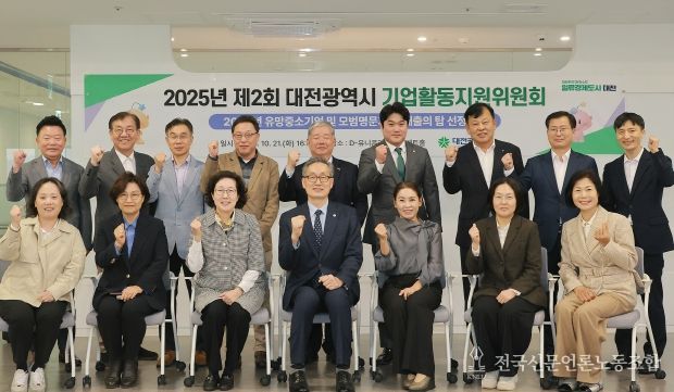 전국신문언론노동조합 강찬희 기자 | 대전시는 21일 오후, 유성구 도룡동 D-유니콘라운지에서 ‘대전광역시 기업활동지원위원회’를 열고, 유득원 행정부시장 주재로 2025년 유망중소기업, 모범명문기업, 매출의 탑 기업 선정에 대해 심의했다.
