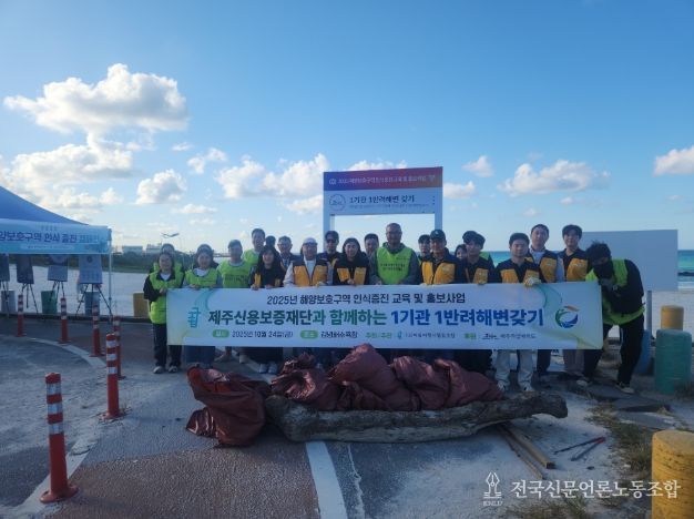 전국신문언론노동조합 김성길 기자 | 제주신용보증재단은 지난 10월 24일, 제주시 구좌읍 김녕해수욕장에서 ‘1기관 1반려해변 갖기’ 지정 행사를 개최하고, 임직원이 참여하는 해양정화활동을 실시했다.