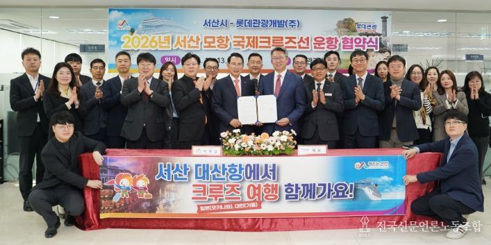 시는 13일 롯데관광개발㈜ 서울지점에서 ‘2026년 서산 모항 국제 크루즈 운항 협약’을 체결했다고 밝혔다.