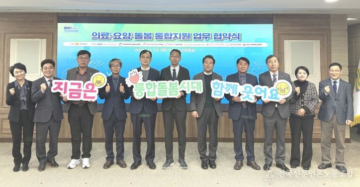 전국신문언론노동조합 김성길 기자 | 전라남도는 13일 도청 서재필실에서 전남사회복지협의회, 전남 8개 사회복지 직능기관과 ‘의료·요양·돌봄 통합지원 업무협약’을 하고, 행정과 민간이 함께하는 통합돌봄 체계 구축에 나섰다.
