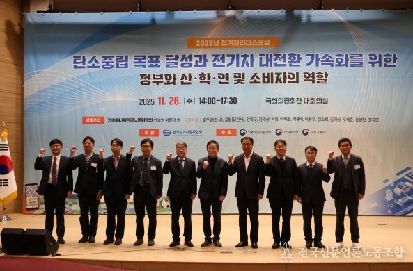 전국신문언론노동조합 강찬희 기자 | 국회 기후에너지환경노동위원회 소속 더불어민주당 강득구 의원(안양시 만안구)은 26일 국회의원회관 대회의실에서 열린 '2025년 전기차리더스포럼'에서 “전기차 대전환을 위해서 국민이 안심할 수 있는 ‘안전한 전기차와 충전기’ 확보가 최우선 과제”라고 강조했다.