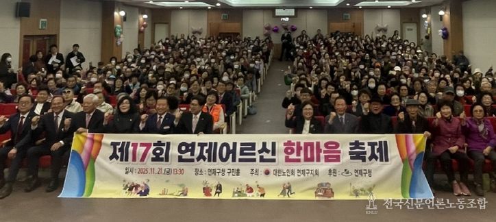 전국신문언론노동조합 조창제 기자 | 연제구는 11월 21일 오후 1시 30분 구청 구민홀에서 대한노인회 연제구지회(회장 윤봉숙)의 주관으로 ‘제17회 연제어르신 한마음축제’를 성황리에 개최했다.