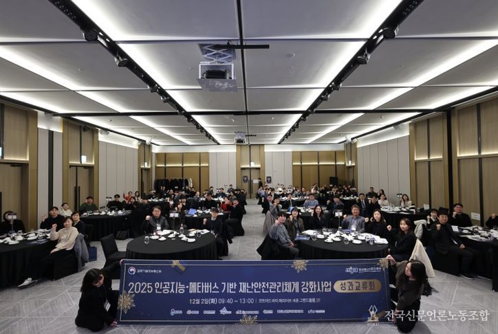 전국신문언론노동조합 김성길 기자 | 충청북도는 12월 2일 세종시에서 열린'2025년 인공지능·메타버스 기반 재난안전관리 체계 강화 사업 성과교류회'에서 산업안전 분야의 3개년 실증성과를 공유했으며, 중앙부처와 충청권 4개 시·도 및 수행기관이 참석한 자리에서 충북의 산업현장 안전관리 고도화 사례를 소개했다.