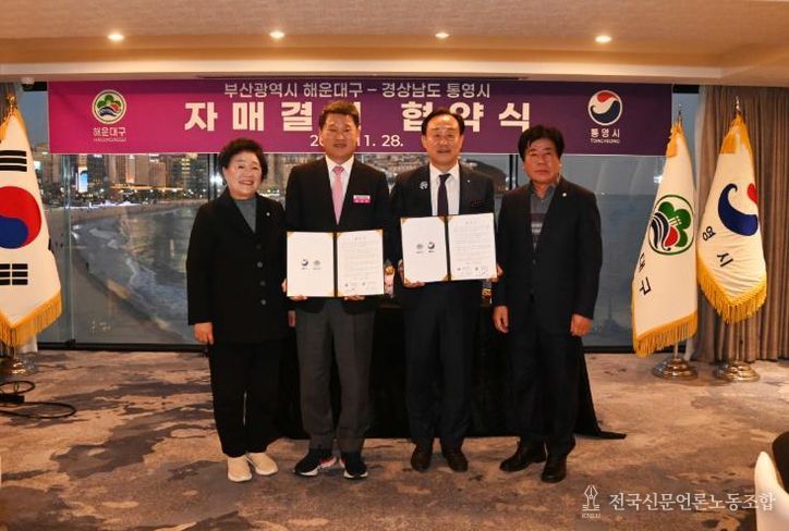 전국신문언론노동조합 조창제 기자 | 해운대구는 지난 11월 28일, 해운대구에서 경상남도 통영시와 자매도시 결연 협약을 체결했다.