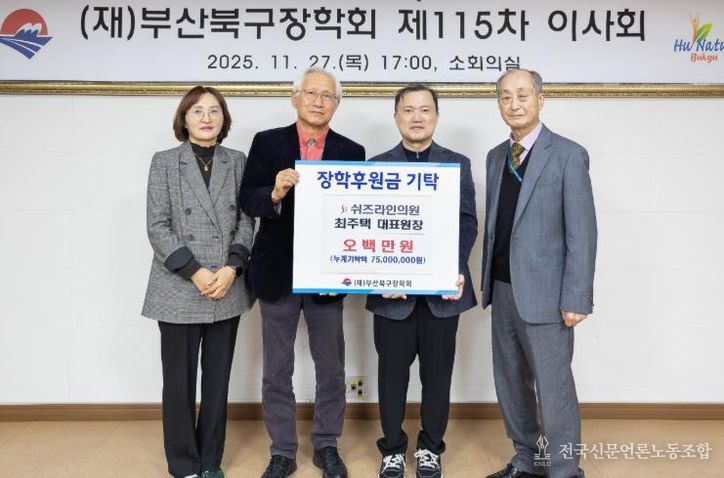 전국신문언론노동조합 조창제 기자 | 부산 북구는 지난 11월 27일, 쉬즈라인의원 최주택 대표원장이 (재)부산북구장학회에 장학기금 500만 원을 기탁했다고 밝혔다.