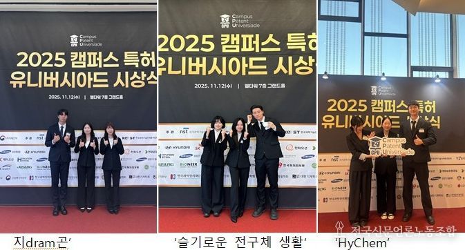 9일 전남대에 따르면, 화학공학부 학생들로 구성된 ‘지DRAM곤’ 팀(지도교수 박종현)이 지식재산청이 주최하고 한국발명진흥회와 4개 유관기관이 공동 주관한 2025 캠퍼스 특허 유니버시아드에서 우수상을 수상했다.