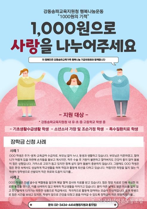 강동송파교육지원청은 앞으로도 ‘천원의 기적’과 같은 자발적 나눔 문화를 확산하고, 학교·지역사회·교육지원청이 긴밀히 연계된 지원 체계를 통해 교육복지 사각지대를 지속적으로 발굴·지원해 나갈 계획이다.