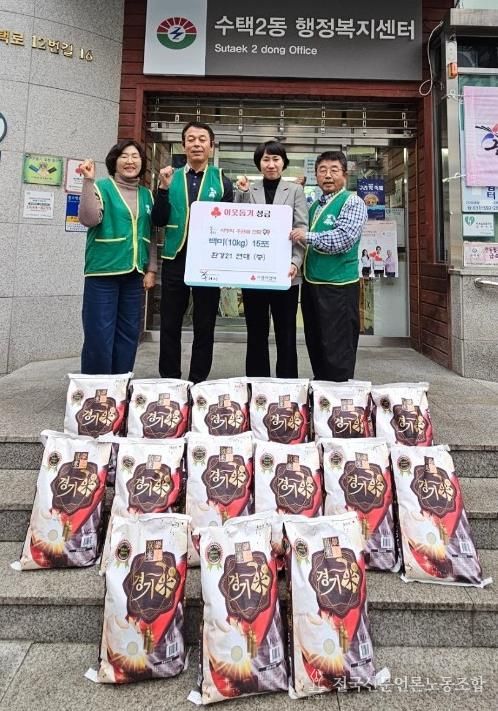 전국신문언론노동조합 기자 | 구리시 수택2동은 지난 16일 구리시 환경21연대로부터 50만원 상당의 백미 10kg 15포를 후원받았다고 밝혔다.