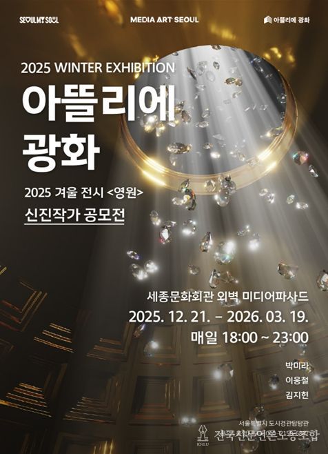 먼저 세종문화회관 정면과 측면부 외벽에 선보이는 대형 미디어파사드 '아뜰리에 광화'는 겨울 시즌을 맞아 ‘신진작가 공모전’ 전시를 선보인다.