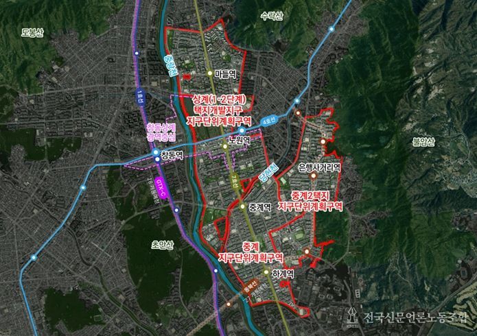 전국신문언론노동조합 강찬희 기자 | 서울시는 노원구 상계(1·2단계), 중계, 중계2 택지개발지구 지구단위계획구역 재정비(안)에 대한 행정절차를 완료하고, 18일 자로 최종 고시했다.