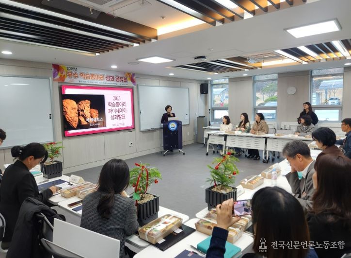 전국신문언론노동조합 강찬희 기자 | 경북교육청은 19일 본청 미디어회의실에서 본청 소속 지방공무원을 대상으로 ‘2025년 우수 학습동아리 성과공유회’를 열고, 한 해 동안 운영한 학습동아리의 주요 활동과 성과를 공유했다고 밝혔다.