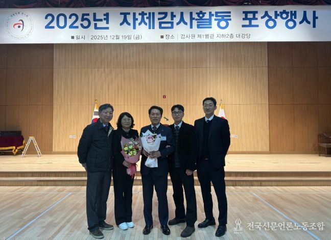 전국신문언론노동조합 강찬희 기자 | 경상남도 감사위원회(위원장 배종궐)는 감사원 주관 ‘2025년 자체감사활동 심사’에서 성과향상 최우수 기관으로 선정돼 19일 감사원 본원(서울)에서 열린 시상식에서 감사원장 표창을 받았다.