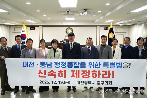 전국신문언론노동조합 강찬희 기자 | 대전 중구의회는 19일 열린 제270회 제2차 정례회 제4차 본회의에서 김석환 의원이 대표 발의한 ‘대전충남 행정통합 특별법 조속한 국회 심의·의결 촉구 결의안’을 채택했다.