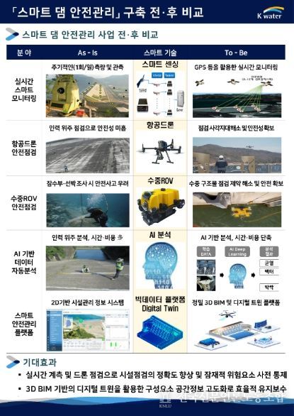 또한, 무인기를 활용한 무인 안전점검으로 기존 사람이 직접 댐체 고지 작업, 수중 잠수작업에서 발생하는 인명사고 위험도 획기적으로 줄였다.