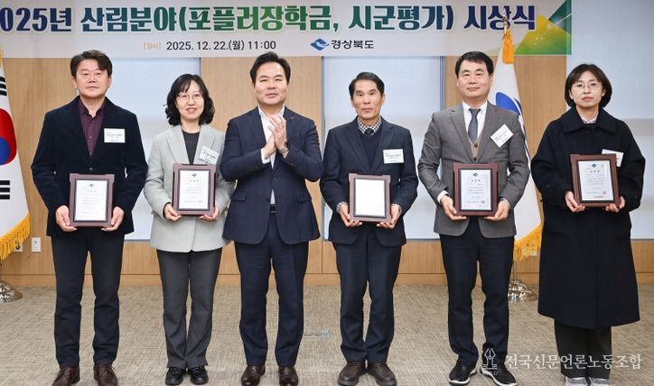 전국신문언론노동조합 강찬희 기자 | 경상북도는 22일 도청 사림실에서 ‘2025년 산림분야 종합평가’우수 시군에 표창패와 포상금을 수여하고 한 해 동안 산림시책 행정 추진을 위해 노력한 시군 관계자들을 격려했다.
