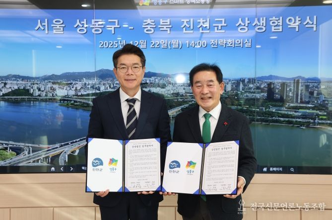 전국신문언론노동조합 강찬희 기자 | 충북 진천군과 서울시 성동구는 22일 성동구청에서 상생협력 업무협약을 체결했다.