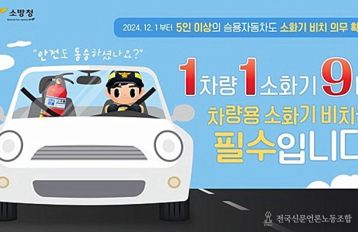 전국신문언론노동조합 강찬희 기자 | 천안서북소방서(서장 김종욱)는 차량 화재 발생 시 신속한 초기 대응을 위해 차량용 소화기 설치를 적극 당부했다.