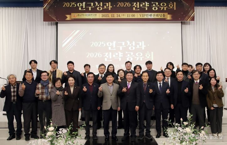 전국신문언론노동조합 강찬희 기자 | 충남역사문화연구원은 24일 오전 11시 공주 브이아이피웨딩홀에서 ‘연구원 성과·전략 공유회’를 열고 2025년 주요 성과를 공유하는 한편 2026년 추진 전략을 대내외에 제시했다.