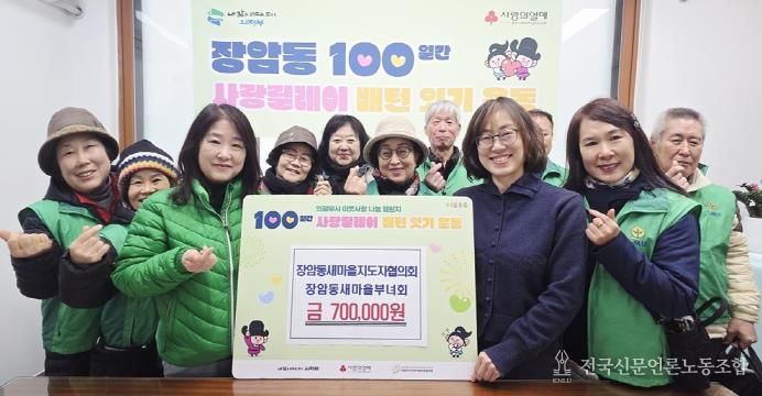 전국신문언론노동조합 기자 | 의정부시 장암동주민센터는 12월 23일 장암동 새마을부녀회·새마을지도자협의회가 겨울철 취약계층을 돕기 위해 성금 70만 원을 기부했다고 밝혔다.