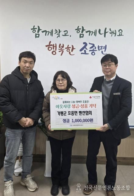 전국신문언론노동조합 기자 | 가평군 조종면 펜션협회는 지난 24일 조종면 행정복지센터를 방문해 이웃돕기 성금 100만원을 기탁하며 온기를 더했다.