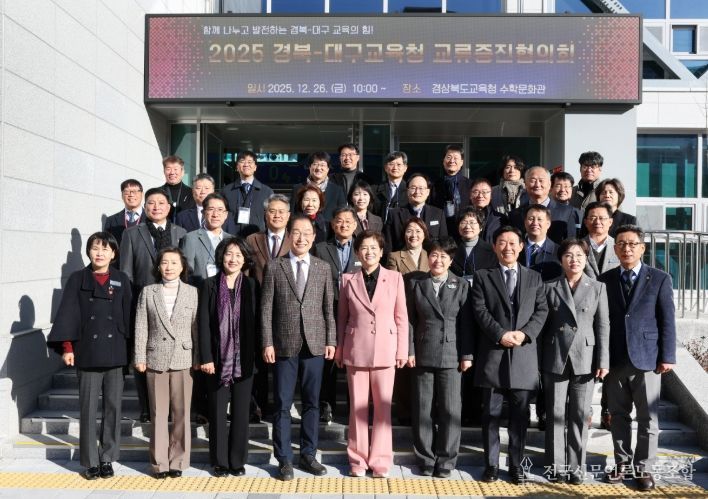 전국신문언론노동조합 강찬희 기자 | 경북교육청은 26일 포항시에 있는 경상북도교육청 수학문화관에서 ‘2025 경상북도교육청-대구광역시교육청 교류증진협의회’를 개최했다고 밝혔다.