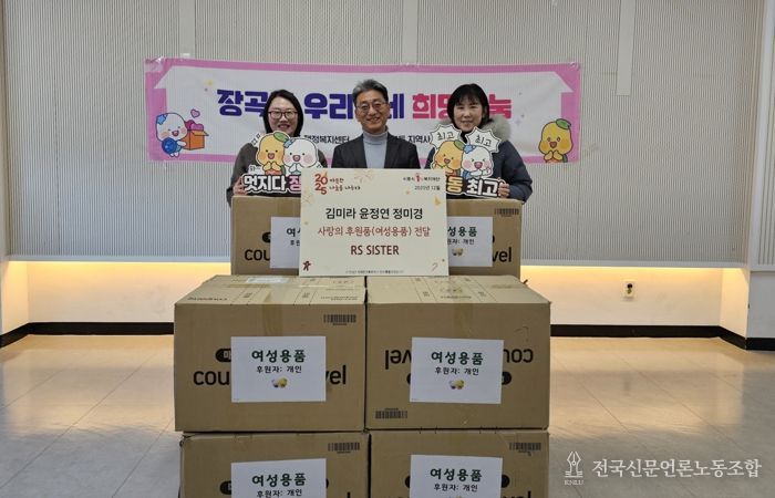 전국신문언론노동조합 기자 | 시흥시 장곡동 행정복지센터는 26일 개인 후원자 김미라, 윤정연, 정미경씨가 관내 취약계층을 위해 260만 원 상당의 여성용품을 후원했다고 전했다.
