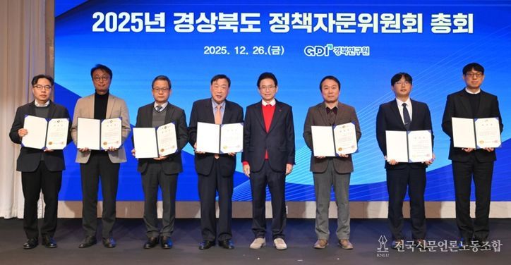 전국신문언론노동조합 강찬희 기자 | 경상북도는 26일 스탠포드호텔에서 2025년 정책자문위원회 총회를 개최하고, 2026년 주요 정책 방향과 미래 전략을 공유하며 각 분야별 정책 추진을 위한 발전 방안을 논의했다.