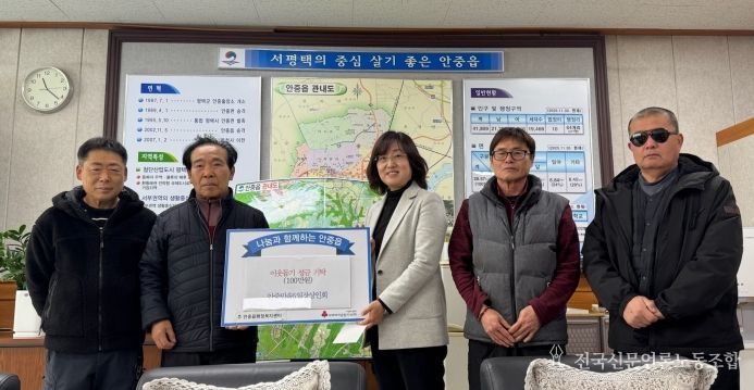 전국신문언론노동조합 기자 | 안중민속5일장상인회는 지난 26일 평택시 안중읍 행정복지센터를 방문해 어려운 이웃을 위한 성금 100만 원을 기부했다.