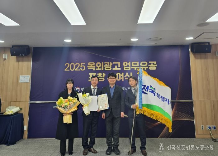전국신문언론노동조합 김성길 기자 | 전북특별자치도가 행정안전부가 주관한 ‘2025년 옥외광고 정책 평가’에서 전국 광역자치단체 가운데 최고 등급인 ‘국무총리 표창’을 수상했다고 29일 밝혔다.