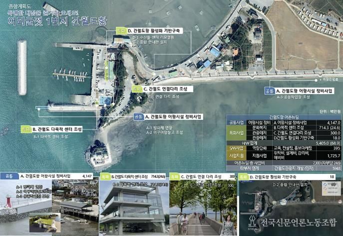 주요 사업으로 간월암과 간월도항을 직접 연결하는 다리를 신설하며, 이를 통해 간월암을 방문한 관광객이 상권이 형성된 간월도항으로 자연스럽게 이동할 수 있게 될 전망이다.
