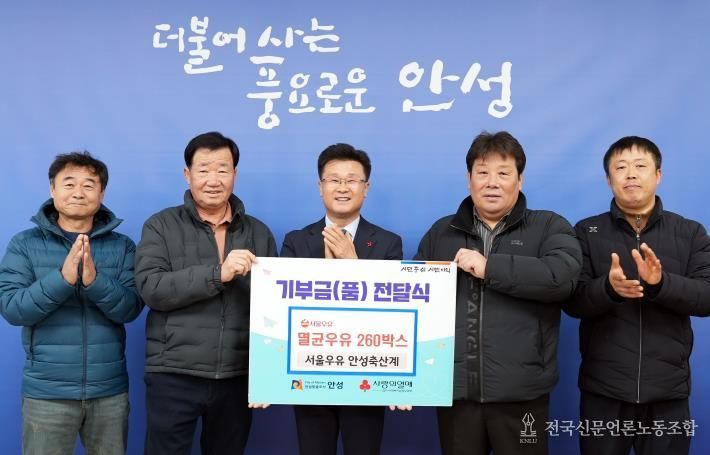 전국신문언론노동조합 기자 | 안성시는 지난 12월 29일, 서울우유 안성축산계와 ㈜스마트에스지가 연말을 맞아 어려운 이웃을 위한 나눔을 실천했다고 밝혔다.