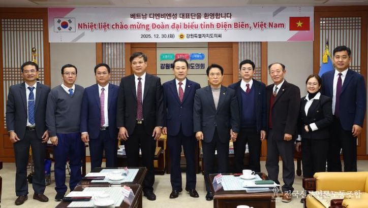 전국신문언론노동조합 강찬희 기자 | 강원특별자치도의회는 30일 도의회를 방문한 베트남 디엔비엔성 대표단을 영접하고, 양 지역 간 우호 증진과 교류 협력 방안을 논의하기 위한 간담회를 가졌다고 밝혔다.