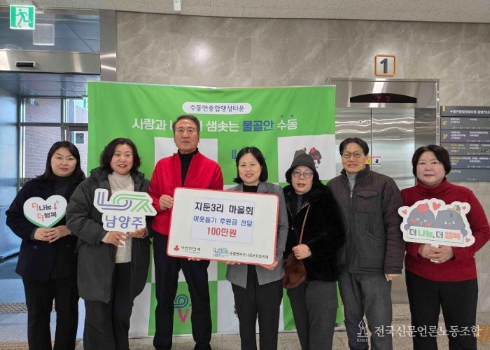 전국신문언론노동조합 기자 | 남양주시는 30일 수동면 지둔3리 마을회가 지역 내 어려운 이웃을 위한 후원금 100만 원을 경기사회복지공동모금회를 통해 수동면 지역사회보장협의체에 지정 기탁했다고 밝혔다.