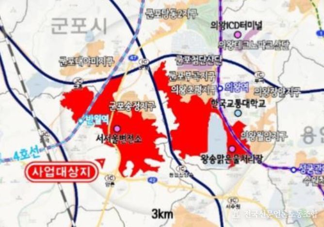 전국신문언론노동조합 강찬희 기자 | 국토교통부는 12월 31일 경기도 의왕시, 군포시, 안산시, 화성시 및 인천광역시 남동구 등 총 5곳 1,069만㎡(총 7.8만호)의 공공주택지구의 지구계획을 최초로 승인하고, 경기도 구리시와 오산시 총 2곳 706만㎡(총 5.5만호)를 공공주택지구로 지정한다.