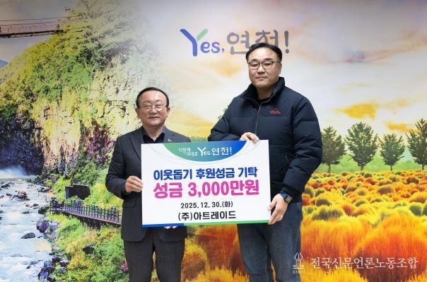전국신문언론노동조합 기자 | 연천군은 지난 30일 오후 5시 군수실에서 ㈜아트레이드와 기탁식을 가졌다고 밝혔다.