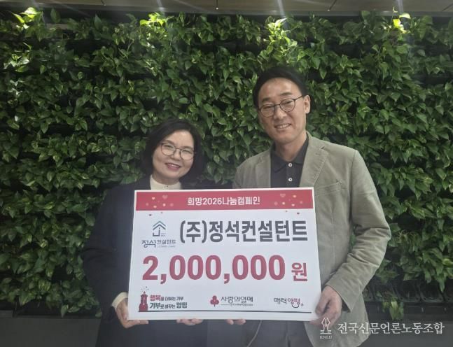 정연태 ㈜정석컨설턴트 대표는 “도시계획 분야에 종사하는 기업으로서 현장에서 접하는 지역의 생활 여건과 어려움에 관심을 가져왔다”며 “추운 겨울을 앞두고 도움이 필요한 이웃들에게 조금이나마 온기가 전해지기를 바라는 마음으로 기탁을 결정했다”고 말했다.