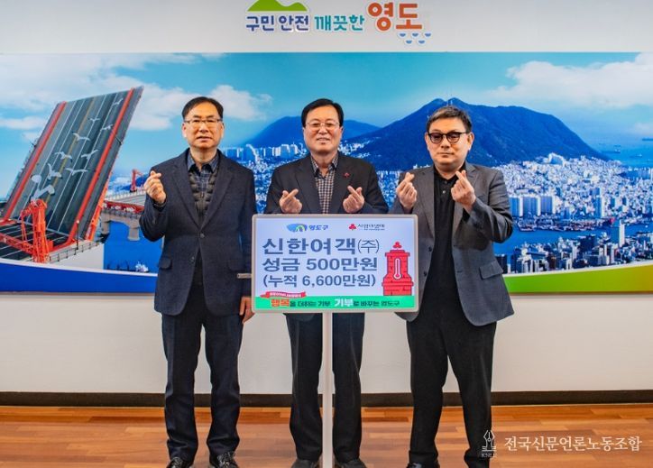 전국신문언론노동조합 조창제 기자 | 부산 영도구 소재 신한여객자동차㈜(대표 성민호)는 지난 12월 30일 영도구청을 방문해 성금 500만 원을 기탁했다.