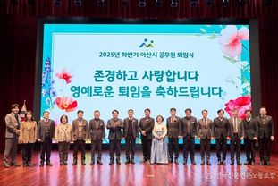 한편, 아산시는 상·하반기 퇴임식을 정례적으로 운영하며, 퇴직 공무원에 대한 사회적 존중과 공직 가치 확산을 위한 예우 프로그램을 지속적으로 발굴·추진해 나갈 방침이다.