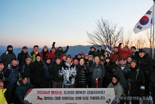 전국신문언론노동조합 강찬희 기자 | 김진태 강원특별자치도지사는 2026년 1월 1일 새해 첫 일정으로 도청 실국장 및 직원 30여 명과 함께 금병산에서 해맞이 산행을 진행했다.