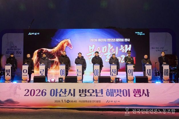 전국신문언론노동조합 강찬희 기자 | 아산시는 1월 1일 오전 아산문화공원 잔디광장에서 ‘2026 병오년(丙午年) 해맞이 행사’를 열고, 시민과 함께 희망찬 새해의 첫 해를 맞이했다.