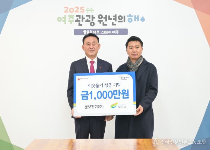전국신문언론노동조합 기자 | 지난 30일 동보전기 및 주식회사 부광에너지는 여주시를 방문하여 관내 저소득층을 위한 이웃돕기 성금으로 각 1,000만원을 기탁했다