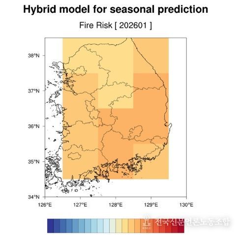 전국신문언론노동조합 강찬희 기자 | 산림청 국립산림과학원(원장 김용관)은 1월 산불 발생 위험을 장기 예측한 결과(첨부 1), 전국적으로 ‘높음’ 단계가 전망된다고 밝혔다. 이는 과거 30년간의 1월 기록 중 8번째로 위험한 수준으로, 작은 불씨가 대형 화재로 번지지 않도록 각별한 주의가 필요하다.