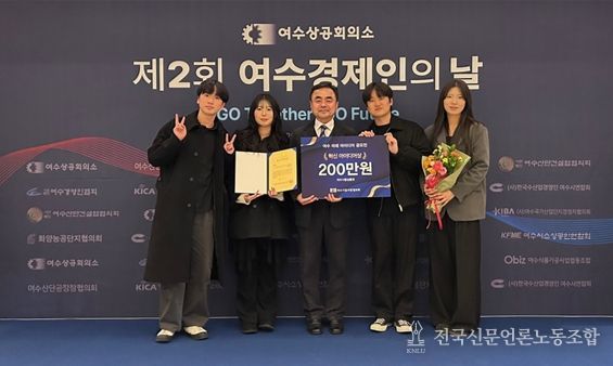 전국신문언론노동조합 김성길 기자 | 전남대학교 학생들이 ‘여수 미래 아이디어 공모전’에서 지역관광·콘텐츠 분야의 기획 역량을 인정받아 ‘혁신 아이디어상’을 수상했다.