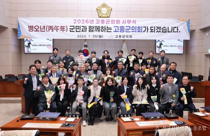 전국신문언론노동조합 강찬희 기자 | 고흥군의회는 지난 1월 5일 고흥군의회 본회의장에서 ‘2026년 고흥군의회 시무식’을 열고, 새해 의정활동의 힘찬 출발을 알렸다.