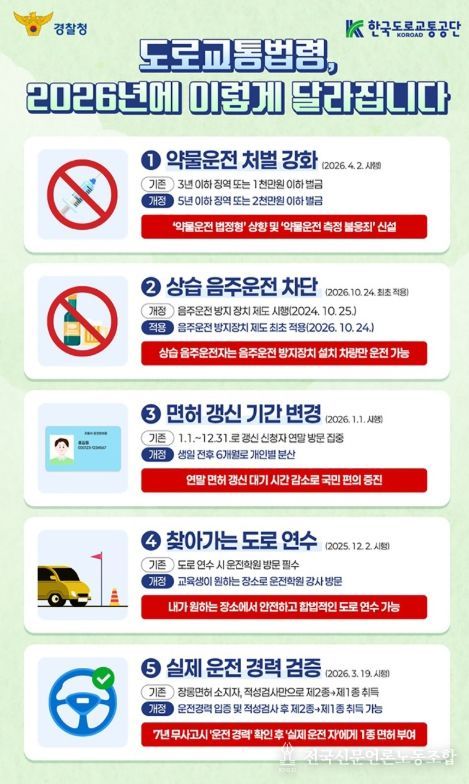 전국신문언론노동조합 강찬희 기자 | ① 약물운전 처벌 강화(2026.4.2. 시행)