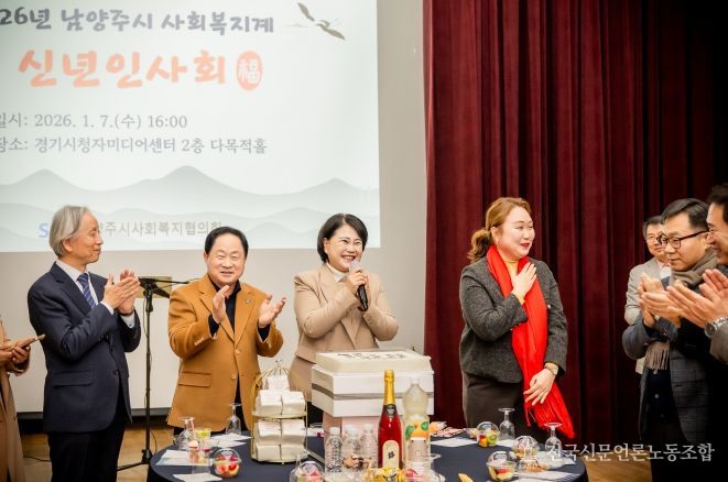 전국신문언론노동조합 강찬희 기자 | 남양주시의회는 7일 다산동에 위치한 경기시청자미디어센터에서 열린 2026년 사회복지계 신년인사회에 참석해 지역 복지발전에 헌신한 사회복지 관계자들을 격려했다.