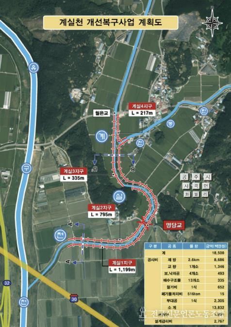 전국신문언론노동조합 강찬희 기자 | 공주시는 지난해 집중호우로 큰 피해가 발생한 사곡면 화월리 계실천 일원에 총사업비 185억 원을 투입해 ‘계실천 개선복구사업’을 본격 추진한다고 12일 밝혔다.