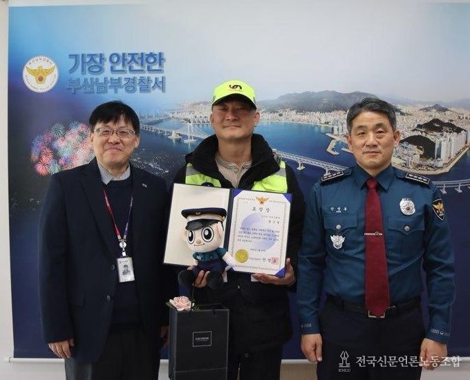 전국신문언론노동조합 이의용 기자 | 부산 남구는 소속 환경관리원이 현금이 든 가방을 습득한 뒤 즉시 경찰에 신고해 분실자에게 무사히 돌려준 공로로, 지난 1월 13일 부산남부경찰서로부터 감사장을 수여받았다고 밝혔다.