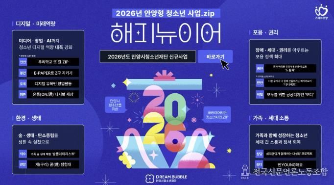 안병일 재단 대표이사는 “2026년 신규사업은 단순한 프로그램 확대가 아니라, 청소년이 스스로 선택하고 기획하며 사회와 연결되는 구조를 만드는 데 의미가 있다”며, “청소년의 오늘이 곧 안양의 내일이 되는 정책을 지속적으로 추진하겠다”고 밝혔다.