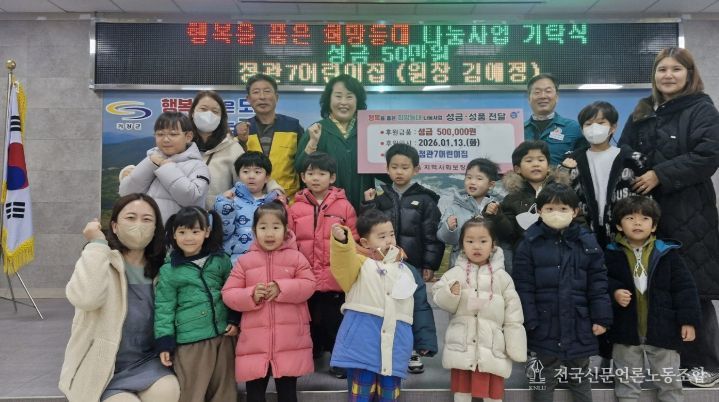 전국신문언론노동조합 이의용 기자 | 기장군 정관읍행정복지센터는 지난 13일 정관7어린이집(원장 김애정)이 관내 취약계층 지원을 위한 성금 50만원을 기탁했다고 14일 밝혔다.